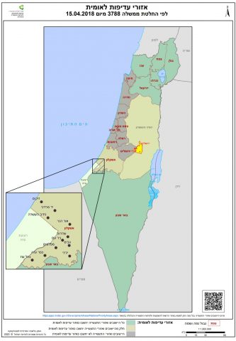 הממשלה אישרה את הארכת מפת אזורי העדיפות הלאומית מ-2018 בחמישה חודשים, בכפוף להקמת צוות שרים המורכב מנציגי כל המפלגות שיגבש מפה חדשה. בכירים במפלגת העבודה ומרצ רוצים לשנות את סדרי העדיפויות הלאומי ולהכניס ישובים ערבים לרשימת אזורי העדיפות הלאומית. בגוש המרכז שמאל רוצים גם לבחון את מעמד הישובים ביהודה ושומרון שמוגדרים סדר עדיפות לאומי. ברשימת הישובים ניתן למצוא את ישובי בנימין והשומרון ביניהם: בית אל, אדם, דולב, הר ברכה, ברוכין ועוד. לא ברור עדיין האם הסטטוס של ישובי יו"ש יפגע.