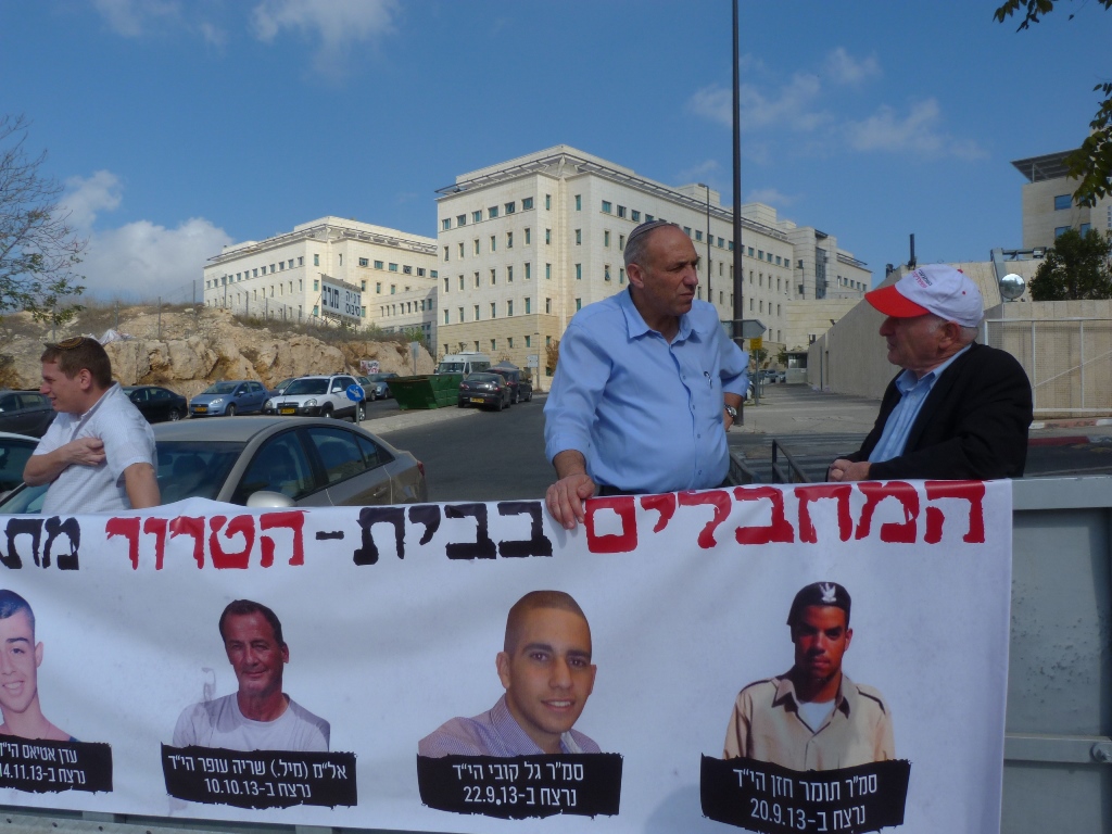 המשתתפים החזיקו שלטים עם תמונות 4 הנרצחים בחודשים האחרונים סמ"ר קובי חזן סמ"ר גל קובי אל"מ (מיל) שריה עופר ורב"ט עדן אטיאס הי"ד. לאחר שנים של שקט יחסי בגזרת יהודה ושומרון ובעיקר מאז החל המשא ומתן ושחרור המחבלים גברו אירועי הטרור בארץ.