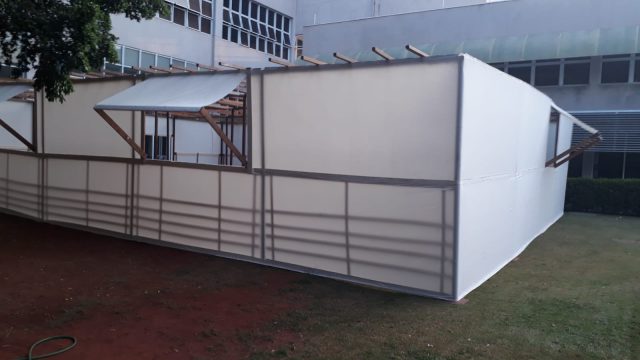 "זו, סוכת בית הספר בית יעקב בסאו פאולו ברזיל. בחול המועד אנחנו לומדים ומלמדים כרגיל, ולכן בונים בבית הספר שתי סוכות ענקיות, בהן תתקיימנה לסירוגין ארוחות לצוות ולכאלף תלמידיו. כמו כן, כל כיתה תזכה לחוות כמה מהשיעורים בסוכה, לרקוד ולשיר בה ולחוש את אווירת החג".