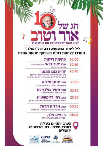 לימוד לציון עשור לפטירת הרב חנן פורת זצ"ל. במרכז חיבה רח' הרצוג 75. מהשעה 20:00 ועד 1:30