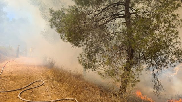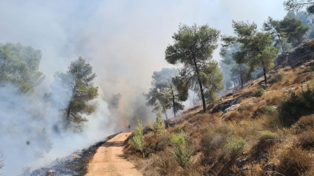 לוחמי אש ומתנדבים מתחנה אזורית יהודה פועלים בשעה זו בשריפה ביער גבעות בגוש עציון.