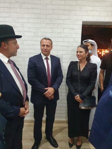 שר התיירות, יואל רזבוזוב (יש עתיד) המריא לדובאי לחנוך בשם ממשלת ישראל את הביתן הישראלי במסגרת תערוכת אקספו העולמית. עוד קודם המריאה לאמירויות שרת הפנים איילת שקד (ימינה). השניים התארחו הערב לסעודה עם הקהילה היהודית בממלכה.