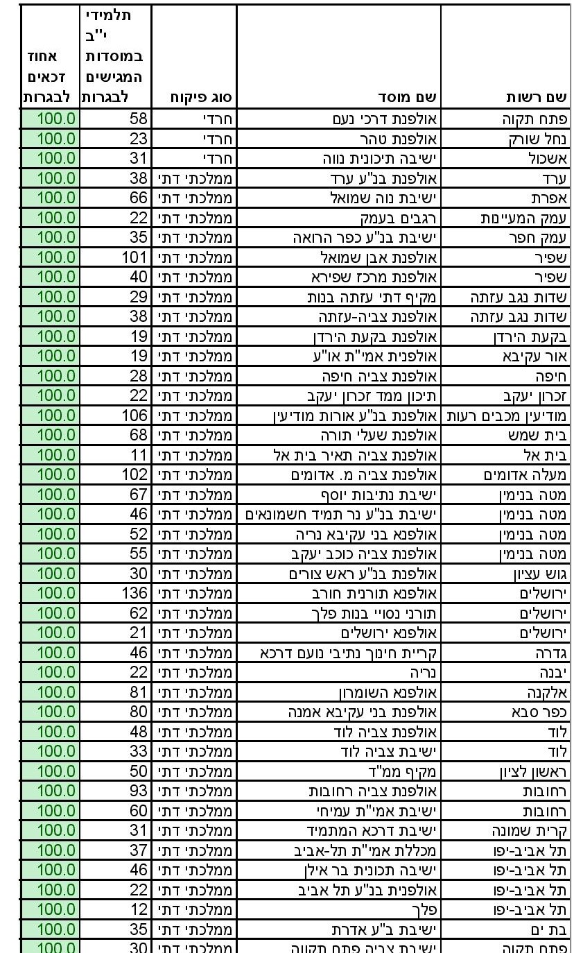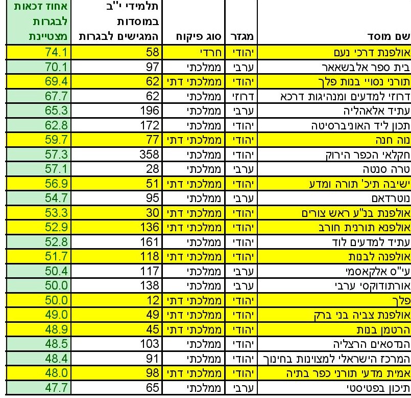 67 בתי ספר תיכונים השיגו 100% זכאות לבגרות מבין הבוגרים בהם 43 תיכונים סרוגים: