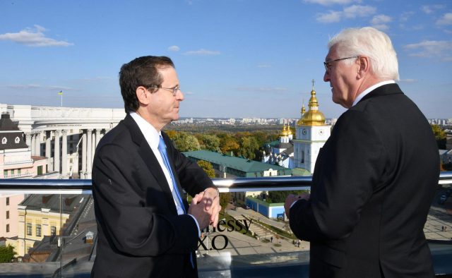 נשיא המדינה יצחק הרצוג קיים היום (רביעי) פגישת עבודה מדינית עם נשיא גרמניה, פרנק-וולטר שטיינמאייר שהגיע לקייב במסגרת חניכת המרכז להנצחת השואה באבי יאר באוקראינה.