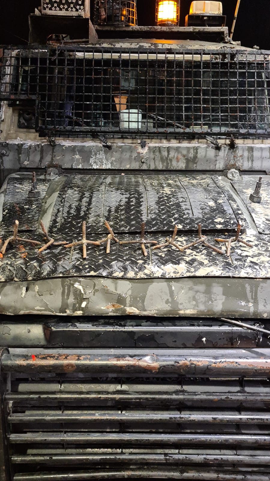במסגרת ההתפרעות הושלכה אבן לעבר ניידת מג"ב, שניפצה את חלון הניידת כתוצאה מכך לוחם מג"ב נפצע באורח קל מרסיסי הזכוכית. כמו כן בציר יציאת הכוחות אותרו ברזלים שנועדו לפגוע בניידות של הכוחות. הלוחמים הגיבו באמצעים לפיזור הפגנות. נגרם נזק לשלושה ניידות מג"ב. הלוחם פונה לרופא הצבאי לקבלת טיפול רפואי."
