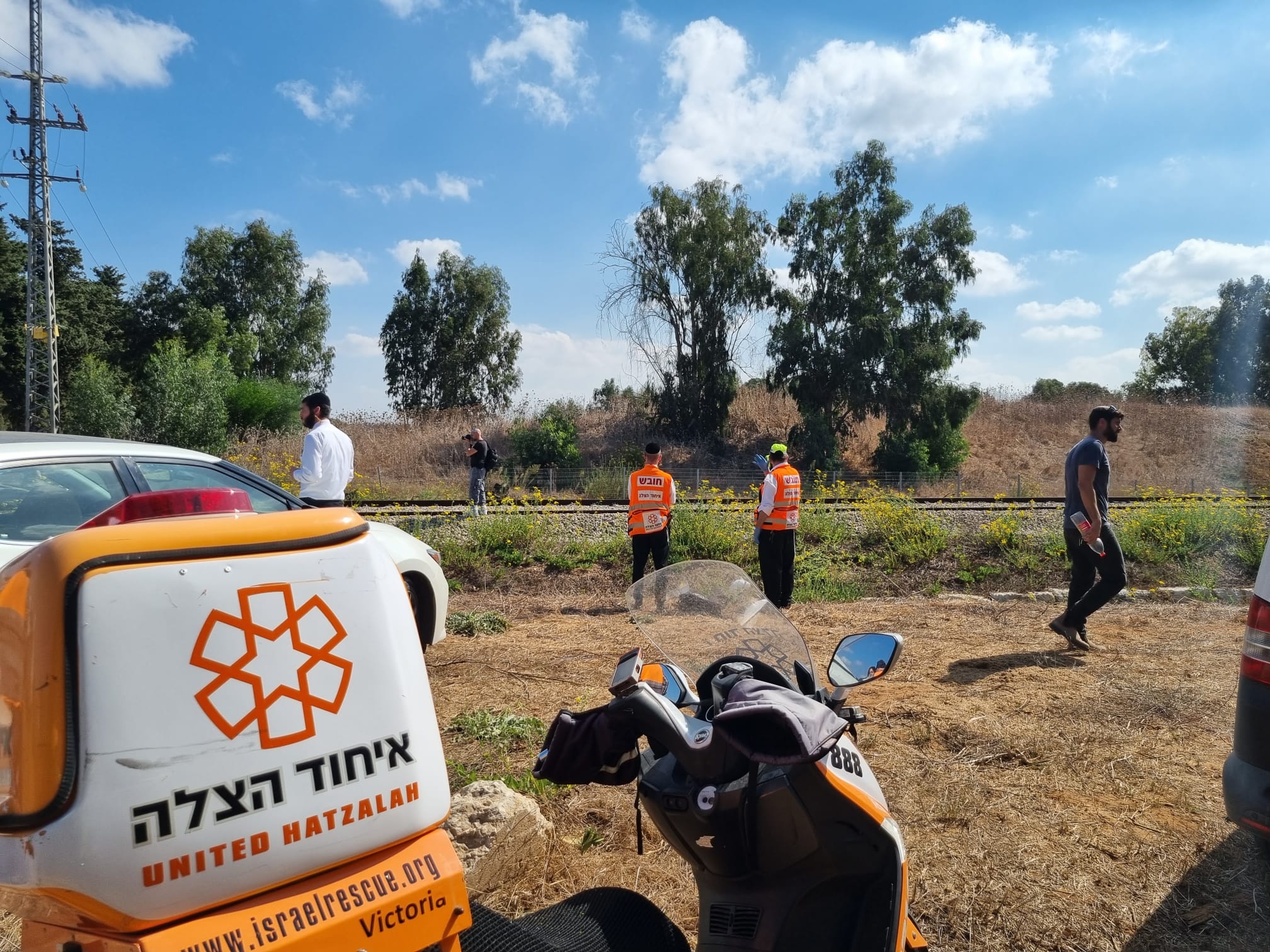 פראמדיק מד"א דניאל סילוק סיפר: "עצרנו עם הניידת טיפול נמרץ בשולי כביש החוף והלכנו רגלית לפסי הרכבת. הפצוע שכב מחוסר הכרה ועם חבלת קשה מאוד בפלג גופו העליון, ביצענו בו בדיקות רפואיות, הוא היה ללא סימני חיים ונאלצו לקבוע את מותו במקום."