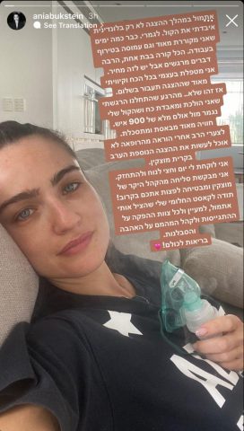 "חוויה מאוד מבאסת ומתסכלת" בוקשטיין כתבה בסטורי שלה בחשבון האינסטגרם. "אני מטפלת בעצמי בכל הכוח" היא הוסיפה, כשהיא אוחזת בתמונה באינהלציה.