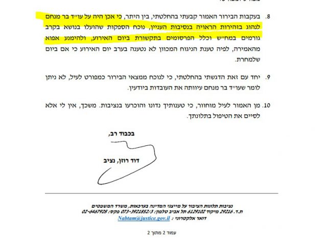 במכתב התייחס עו"ד יאדו למכתב ששלח סגן ראש מח"ש עו"ד משה סעדה לעו"ד שלמה למברגר, המשנה לפרקליט המדינה, בו פירט את מחדלי החקירה. במכתב המדובר טען עו"ד סעדה כי ראש מח"ש "מבטלת במחי יד הנחייה של ראש צוות החקירה שתכליתה למנוע שיבוש חקירה ומשחררת את השוטרים, ובכך מעצימה את פוטנציאל השיבוש באופן משמעותי".