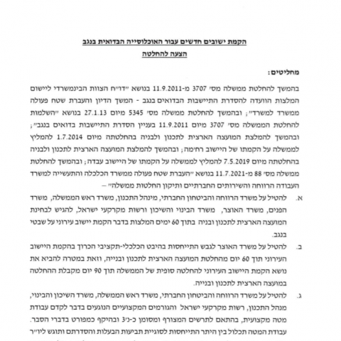 שרי הממשלה צפויים לאשר מחר (רביעי) הצעת החלטה להסדיר שלושה ישובים לבדואים בנגב כפי שכתוב בהסכמים הקואליציוניים עם מפלגת רע"מ.