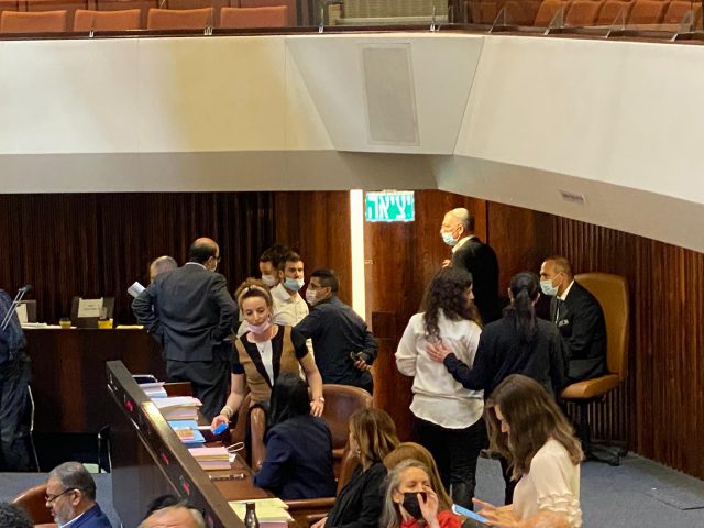סביב חצות נרשמה מהומה במליאת הכנסת, לאחר שחברת הכנסת נעמה לזימי (מפלגת העבודה) תכננה לנטוש באמצע ההצבעות על תקציב המדינה, כמחאה על התכנון לפנות מחר (חמישי) משפחה בת 10 נפשות מגן יבנה.