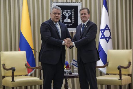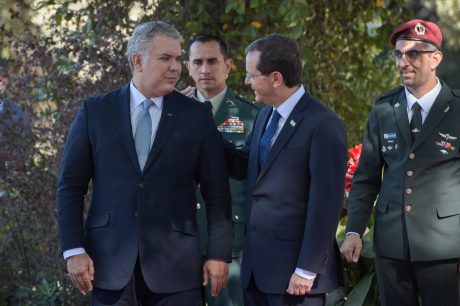 נשיא המדינה יצחק הרצוג ערך היום (שני) טקס קבלת פנים ממלכתית לנשיא קולומביה איוואן דוקה מארקס, כחלק מביקורו המדיני בישראל. נשיא קולומביה התקבל בטקס רשמי בבית הנשיא במהלכו נוגנו המנוני שתי המדינות, לאחר מכן סקרו הנשיאים את משמר הכבוד הצה"לי. שני המנהיגים ערכו פגישת עבודה מדינית בה דנו בהזדמנויות של ישראל וקולומביה לשתף פעולה בטכנולוגיות סביבתיות והשקעות לקידום אנרגיה ירוקה וקיימות. לאחר מכן, מסרו הצהרות לתקשורת.