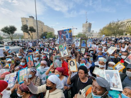 מחאה לעלייה: אלפי בני העדה האתיופית מפגינים כעת (ראשון) מחוץ למשרד ראש הממשלה בירושלים, בדרישה להעלות לארץ את יהודי אתיופיה מאדיס אבבה וגונדר. המחאה מתקיימת על רקע המצב הביטחוני הקשה באתיופיה בצל הלחימה במדינה.