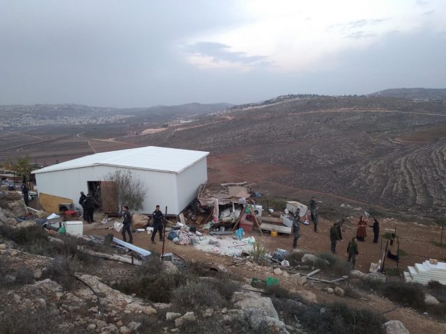 כוחות גדולים של משטרה ומנהל אזרחי ביצעו הבוקר (ד') הרס בגבעת גאולת ציון שבגוש שילה במועצה האזורית בנימין.