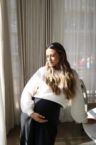 שני כספי ההריונית, המוכרת כאשתו של עומרי כספי, עוברת לפרונט ומצטלמת לקולקציה חדשה של BABE אתר אופנה לבגדי היריון.