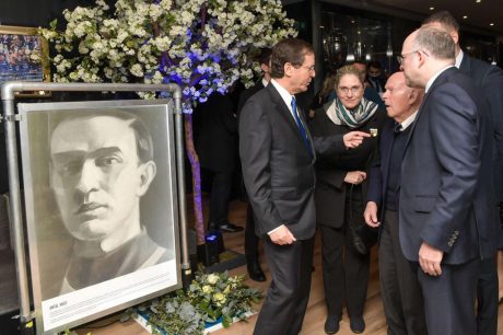 בהמשך הרצוג פנה לסר בן הלפגוט, ניצול שואה ואלוף הרמת משקולות, וסיפר לו כי אביו, חיים הרצוג ז"ל, היה ממשחררי מחנה הריכוז ברגן בלזן – המחנה בו שהתה אחותו. הנשיא איחל לבן יום הולדת 92 שמח ואמר: "הסיפור שלך הוא על כוחו של רצון בלתי נגמר להתגבר על הרוע האפל ביותר, ועל יכולתה של רוח האדם להתגבר על חוסר האנושיות הגדול ביותר".