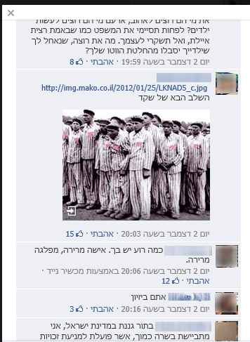 ההתקפות הגיעו בצורה חריפה גם לדף הפייסבוק של ח"כ שקד, שם חלק מהגולשים לא בחלו בהסתה ובהשוואה למעשי הנאצים. כך, למשל, אחד מהם כתב: " חבל שקודם היו הנאצים ורק אז באה מפלגת הבית היהודי, היו יכולים ללמוד מכם על גזענות יותר מתוחכמת ושקטה. אולי תייעצו לרוסיה איך עושים את זה הומני יותר ולאט לאט". גולש אחר טען כי, "גבלס היה גאה בך" ושלישי ציין כי "השלב הבא של שקד" הוא תמונה עם אנשים במדי גטו: