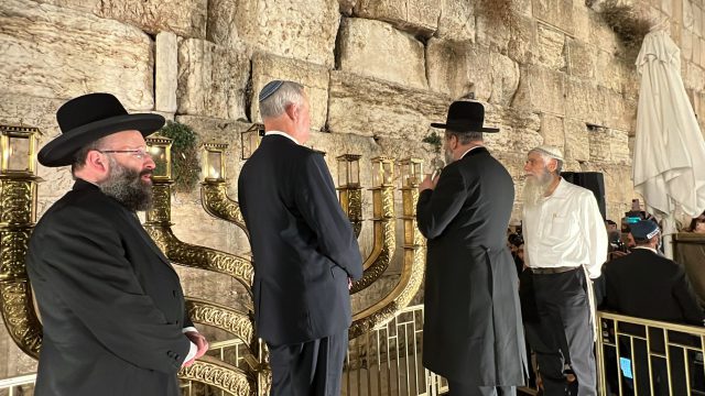 הרב הראשי דוד לאו הדליק נרות חנוכה בכותל במעמד שר הביטחון בני גנץ ורב הכותל. צפו: