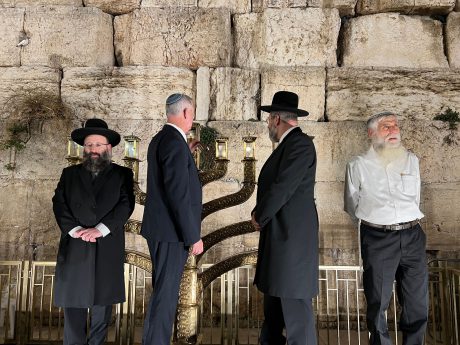 מוקדם יותר היום, הדליק הרב הראשי דוד לאו ביחד עם שר הביטחון גנץ נר ראשון ברחבה המרכזית של הכותל.