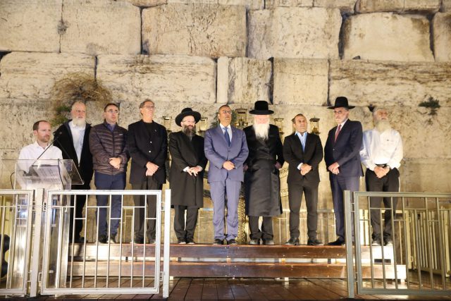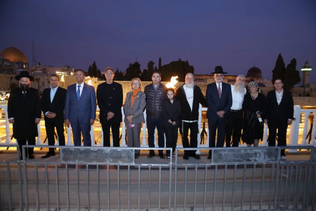 הערב (שלישי), הודלק נר שלישי של חנוכה, במעמד הרבנים יצחק דוד גרוסמן, הרב הגאון שמואל רבינוביץ, ראש העיר ירושלים משה ליאון, מזכיר הממשלה מר שלום שלמה, מנכ"ל הקרן למורשת הכותל סולי אליאב, המשנה לראש העיר ירושלים הרב חיים כהן, סגן נשיא ועידת התביעות בישראל מר שלמה גור, יו״ר מרכז הארגונים של ניצולי השואה הגברת קולט אביטל, מנהל הקצבות הסוציאליות של ועידת התביעות בישראל ירון מרקוס יחד עם כ-100 ניצולי שואה שהגיעו במיוחד להשתתף הערב בהדלקה.