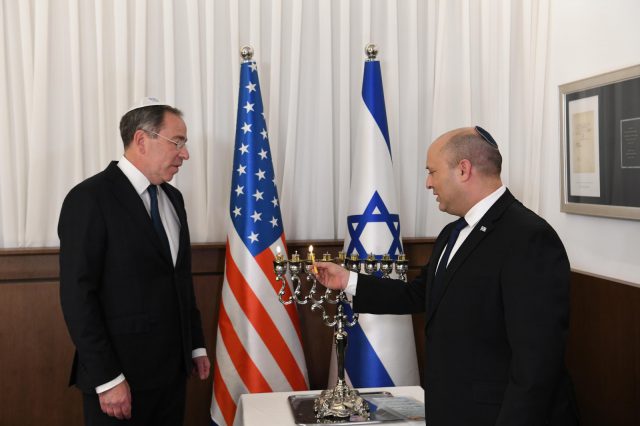 ראש הממשלה, נפתלי בנט, נפגש היום (ראשון) לראשונה עם שגריר ארה"ב בישראל הנכנס, תומאס ריצ׳ארד ניידס במשרד רה"מ בירושלים.