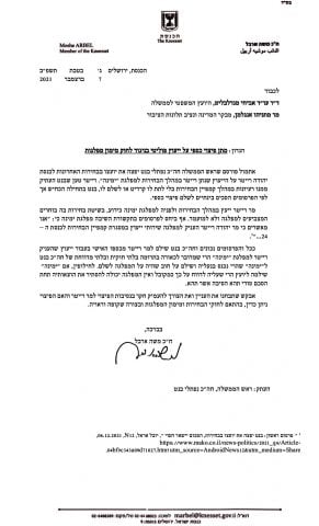 לסיכום כתב ח"כ ארבל: "אבקש שתבחנו את העניין ואת הצורך להעמיק חקר בנסיבות הפיצוי למר רייטר והאם הפיצוי ניתן כדין, בהתאם לחוקי הבחירות ומימון המפלגות ובצורה שקופה וראויה."