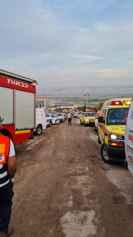 במד"א עדכנו כי "חובשים ופראמדיקים של מד"א העניקו במקום טיפול רפואי ל 14 נפגעים (פועלים סינים) במצב קל ובהכרה מלאה ששאפו עשן ומפנים 3 מתוכם לבי"ח פוריה. כוחות מד"א מאבטחים את פעולות הכיבוי במקום וערוכים להעניק טיפול רפואי לנפגעים נוספים במידה ויאותרו".