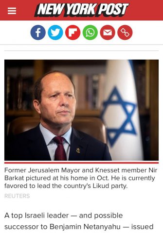 הניו יורק פוסט, העיתון השישי בגודלו בארה"ב פרסם כתבה על ברקת אותו הגדיר "ראש עיריית ירושלים לשעבר, חבר כנסת והמועמד המוביל לעמוד בראש מפלגת הליכוד".