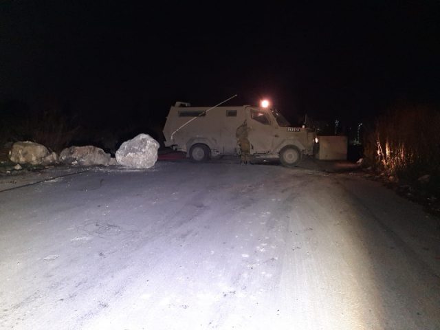 במהלך הלילה הקים צה"ל מחסום מאולתר בדרך לישוב חומש בצפון השומרון וחסם את הגישה ליישוב.