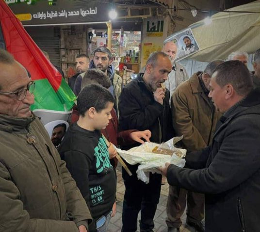 בג'נין מחלקים בקלאוות ומיני מתי'קה לרגל סיום השביתה.