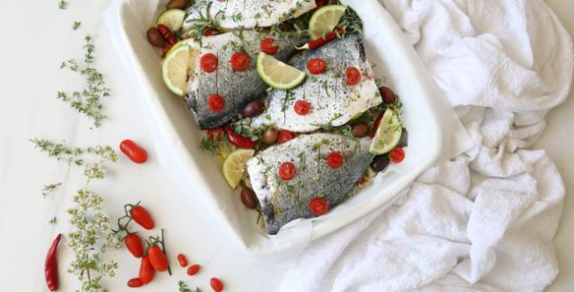 2. מתכון לדג דניס אפוי עם שרי וזיתי קלמטה