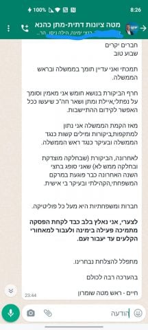 אטיאס כתב אמש הודעה בקבוצות ימינה: חברים יקרים שבוע טוב תמכתי ואני עדיין תומך בממשלה ובראש הממשלה.