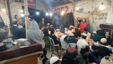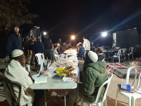 אתמול (מוצ"ש) הצליחה קבוצה של כמאה איש להגיע לחומש ולהצטרף לתלמידי הישיבה במקום לסעודת מלווה מלכה חגיגית ומרגשת.