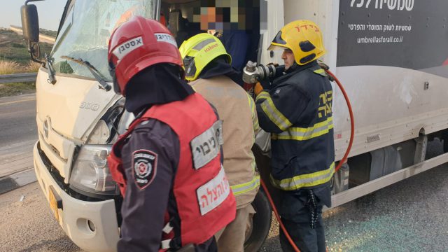 להב רודי אסטבן, מפקד המשמרת: "לפני זמן קצר התקבלה הודעה במשל"ט יו"ש על תאונת דרכים בין 2 משאיות. למקום הוקפצו צוותים של לוחמי אש מתחנה אזורית שומרון".