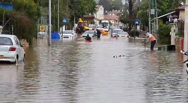 השטפונות הרבים פוקדים בשעה זו (ראשון) את רחבי הארץ, ולצד תמונות החילוץ ישנן גם תמונות אחרות: אדם מפתח תקווה נצפה כאשר הוא שט על קייאק בשטפונות השוטפים את רחובות העיר.
