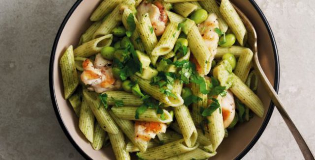 סלט פסטה פסטו עם אדממה ועוף צלוי