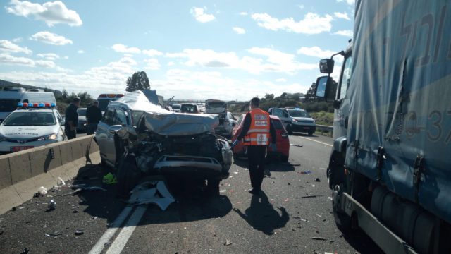 פראמדיק מד"א עדנאן אבו רומי, סיפר: "הייתה המולה גדולה כשהגענו למקום. ראינו שמדובר בתאונה קשה מאוד בין משאית ומספר גדול של כלי רכב פרטיים. גבר כבן 70 שנלכד במושב האחורי באחד מכלי הרכב, היה ללא סימני חיים ולאחר שחולץ נאלצנו לקבוע את מותו. 14 פצועים נוספים שהתהלכו במקום נפצעו באורח קל ובינוני ופונו לבתי החולים תוך מתן טיפול רפואי."