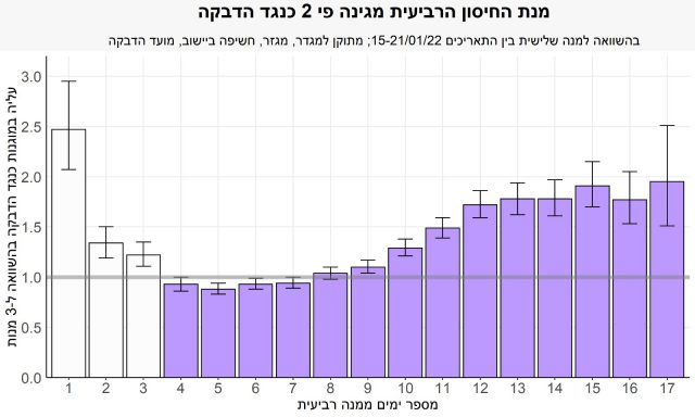 השוואת המוגנות נעשתה ביחס למחוסני מנה שלישית אשר עברו 4 חודשים או יותר ממועד חיסונם הקודם. הניתוח מבוסס על נתונים של כ-400,000 מחוסני מנה רביעית, וכ-600,000 מחוסנים במנה שלישית מעל גיל 60. התוצאות הראשוניות יעודכנו לאורך הזמן עם קבלת נתוני מעקב נוספים.