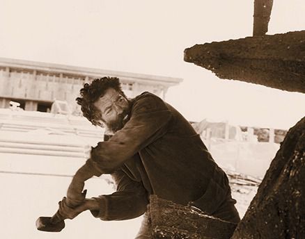 דוד פלומבו מפסל את שערי הכנסת. ארכיון (צילום: ורנר בראון)