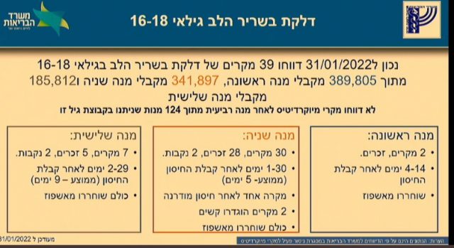 בקבוצת הגיל 16-18, עד כה חוסנו 389,805 ילדים במנה הראשונה, מתוכם 341,897 הספיקו מנה שנייה. את מנת הבוסטר קיבלו 185,812.