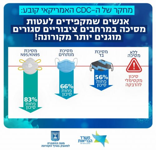 מחקר חדש של ה-CDC קובע: מי שמקפידים על עטיית מסכה – מוגנים יותר מפני הדבקה.