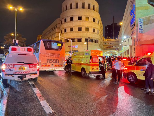 פראמדיק מד"א גיא ארזי סיפר: "כשהגענו למקום הייתה המולה רבה ברחוב הסמוך ובתוך האולם. נכנסו לתוך האולם וראינו 3 צעירים בשנות ה-20 כשהם בהכרה מלאה וסובלים מחבלות בפלג גופם העליון. במקביל לסריקה על מנת לוודא שאין נפגעים נוספים הענקנו להם טיפול רפואי שכלל חבישות ועצירת דימומים ופינינו אותם לבתי החולים כשמצבם בינוני וקל".