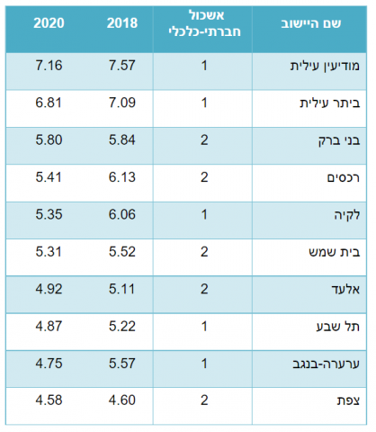הערים עם הכי הרבה ילדים הם כמובן הישובים החרדים והבדואים. ושימו לב לירידה המתונה במספר הלידות למשפחה, בשלוש השנים האחרונות: