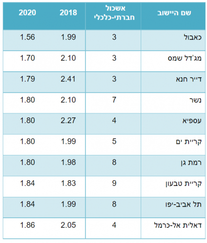 הנתונים המפתיעים הם דווקא בערים בהן שיעור הילדים הוא נמוך. במקום הראשון נמצא הישוב המוסלמי כאבול, אחריו הישוב הדרוזי בצפון רמת הגולן ודיר חנא המוסלמי גם הוא. עספיא ודאליית אל כרמל הם ישובים דרוזיים, והמפתיעים הם נשר וקרית ים עם פחות ילדים אפילו מאשר תל אביב.