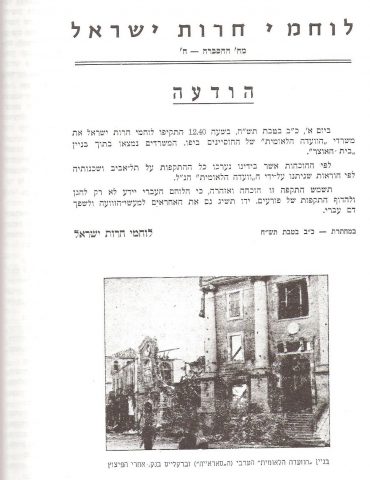 הודעת לח"י על פיצוץ בניין הסראייה ביפו