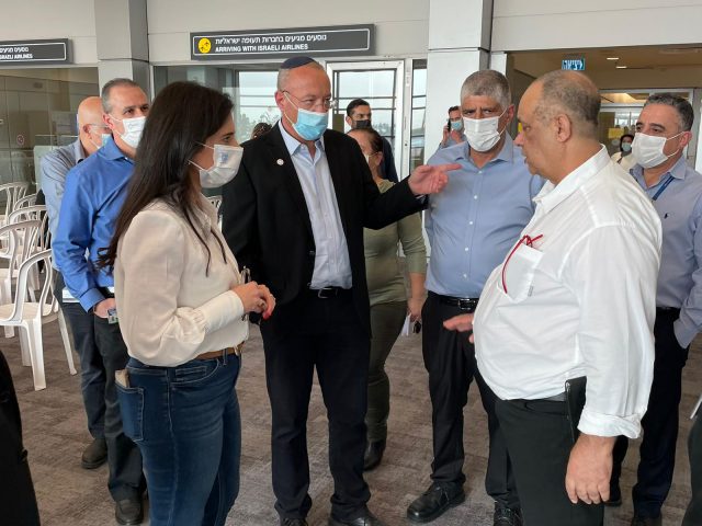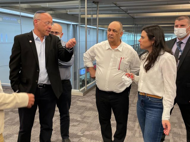 שרת הפנים איילת שקד ביקרה היום (ראשון) בנתב״ג יחד עם מנכ״ל רשות האוכלוסין וההגירה, תומר מוסקוביץ׳ והצוות המקצועי, ויחד עברו את המסלול אותו עוברים האזרחים האוקראינים הכולל את תהליך ביקורת הגבולות והתשאול.