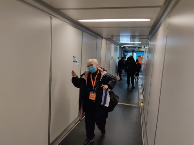 עם נחיתתם בנתב"ג הפליטים התקבלו על ידי מאות בני נוער, שקיבלו את פני העולים בשירת "משנכנס אדר" ו-"עם ישראל חי", תוך כדי ריקודים עם דגלי ישראל ואוקראינה.
