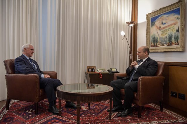 עוד לפני השיחה עם נשיא אוקראינה, בנט נפגש עם סגן נשיא ארה"ב לשעבר מייק פנס, שהגיע לביקור בישראל. השניים שוחחו על הסכם הגרעין והשלכותיו, וכן על המצב באוקראינה.
