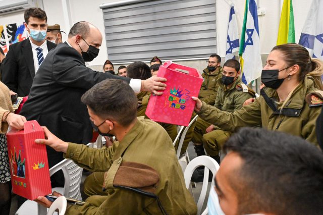 בנט הגיע עם בתו מיכל, וישב עם החיילים והחיילות לקריאת מגילה משותפת. מטעם הצבא ליוו את הביקור מפקד פיקוד הצפון אלוף אמיר ברעם, מפקד אוגדת איו"ש תא"ל אבי בלוט, מח"ט גולני אל"מ ברק חירם מפקדי וחיילי סיירת גולני.