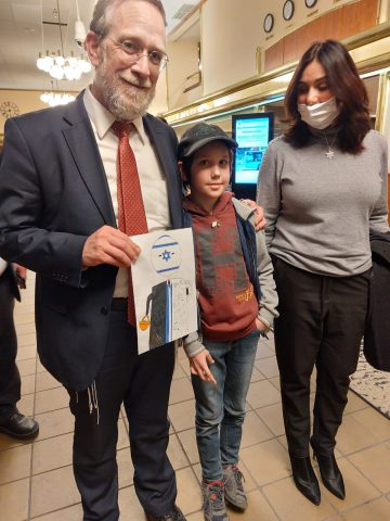 חבר הכנסת ולדימיר בליאק העניק לילד את סיכת הכנסת, וזה מיהר לצרף אותה אותה לדש חולצתו.