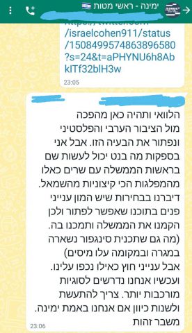 כמה ימים לאחר שבנט כינה את יו"ש "הגדה המערבית" ובצל הפיגועים, מתעורר כעס גדול בקבוצות הפעילים של ימינה. אמש עזבו מס' רכזי שטח מובילים את קבוצת הוואטסאפ של ראשי המטות של ימינה ביניהם מנהל מרחב צפון בבחירות האחרונות, אבי פלד, ראש מטה חיפה ומס' 19 ברשימת ימינה לכנסת, נוי רוזנפלד ועוד פעילים בולטים וראשי מטות אחרים.